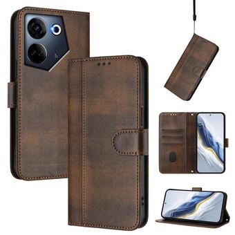 For Tecno Pova 5 Line Splicing Buckle Retro Leather Phone Case(Brown)