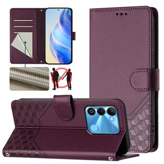 Για Tecno Spark 9 Honeycomb ανάγλυφο RFID δερμάτινη θήκη τηλεφώνου (Violet)