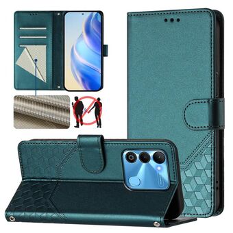 Για Tecno Spark 9 Honeycomb ανάγλυφο RFID δερμάτινη θήκη τηλεφώνου (Πράσινο παγώνι)