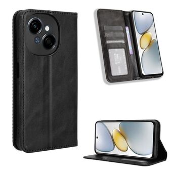 Για Tecno Spark 30C 4G Μαγνητική πόρπη ρετρό υφή δερμάτινη θήκη τηλεφώνου (μαύρο)