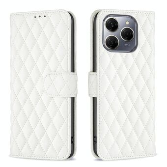 Για Tecno Spark 30C Diamond Lattice πορτοφόλι Flip δερμάτινη θήκη τηλεφώνου (λευκό)