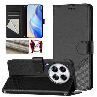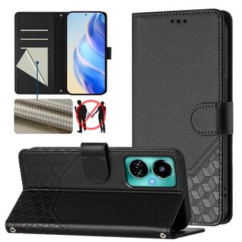 Για Tecno Camon 20 Premier 5G κηρήθρα ανάγλυφη RFID δερμάτινη θήκη τηλεφώνου (Μαύρο)