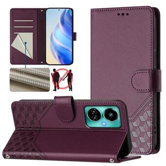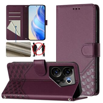 Για Tecno Camon 20 Premier 5G κηρήθρα ανάγλυφο RFID δερμάτινη θήκη τηλεφώνου (Violet)