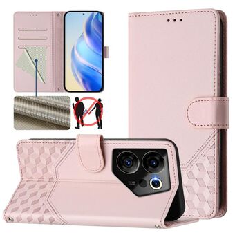 Για Tecno Camon 20 Pro 5G κηρήθρα ανάγλυφη RFID δερμάτινη θήκη τηλεφώνου (ροζ)