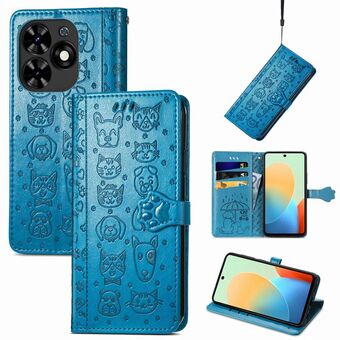 For Tecno Spark 20 Cat and Dog Embossed Leather Phone Case(Blue)