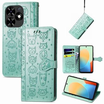 For Tecno Spark 20 Cat and Dog Embossed Leather Phone Case(Green)