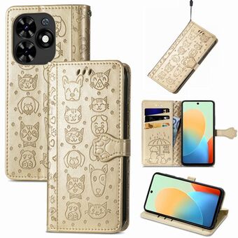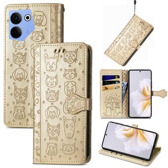 For Tecno Spark 20 Cat and Dog Embossed Leather Phone Case(Gold)