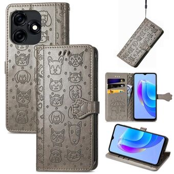 For Tecno Pop 8 4G Cat and Dog Embossed Leather Phone Case(Gray)