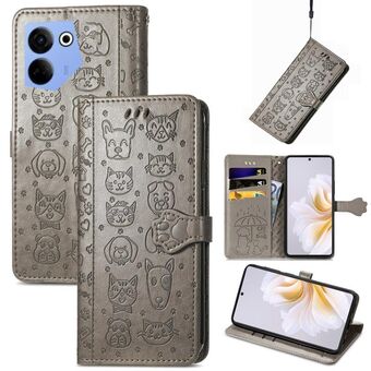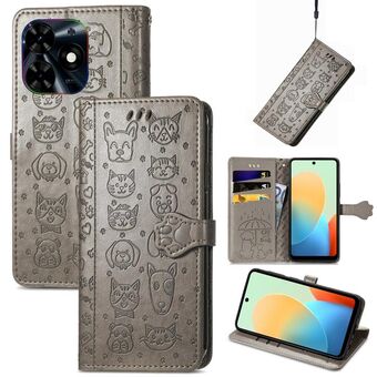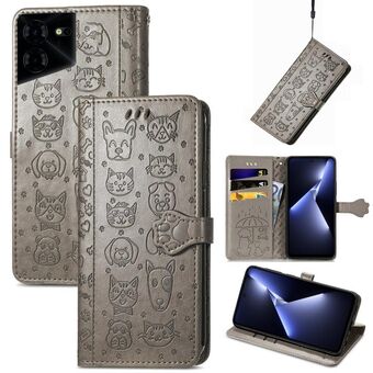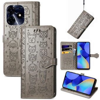 For Tecno Spark 20 Cat and Dog Embossed Leather Phone Case(Gray)