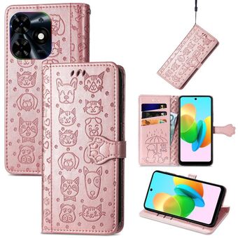 For Tecno Pop 8 4G Cat and Dog Embossed Leather Phone Case(Rose Gold)