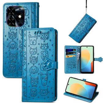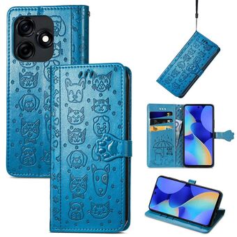 For Tecno Spark 20C / GO 2024 Cat and Dog Embossed Leather Phone Case(Blue)