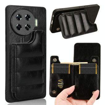 Για Tecno Pova 6 Neo 4G δέρμα αίσθηση μοσχάρι υφή κάρτα υποδοχές δερμάτινη θήκη τηλεφώνου (μαύρο)