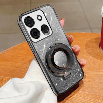 Για Tecno Pova 6 Pro Επιμεταλλωμένο διαβάθμιση Glitter Γύρος κάτοχος TPU τηλέφωνο υπόθεση (μαύρο)