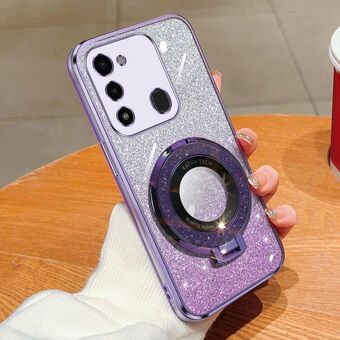 Για Tecno Pova 6 Pro Επιμεταλλωμένο διαβάθμιση Glitter Γύρος κάτοχος TPU υπόθεση τηλεφώνου (μωβ)