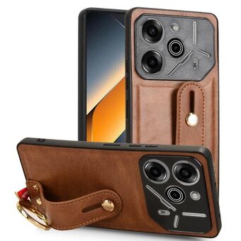 Για Tecno Pova 6 Pro 5G Wristband δέρμα πίσω υπόθεση τηλεφώνου (καφέ)