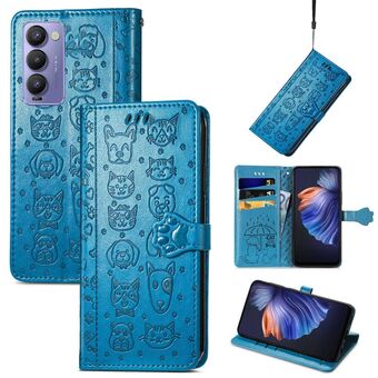 For Tecno Spark 8P Cat and Dog Embossed Leather Phone Case(Blue)