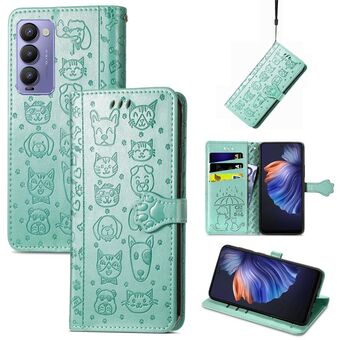 For Tecno Camon 18 Cat and Dog Embossed Leather Phone Case(Green)