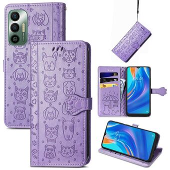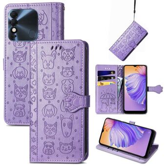 For Tecno Spark 8 Cat and Dog Embossed Leather Phone Case(Purple)