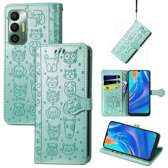 For Tecno Spark 8 Cat and Dog Embossed Leather Phone Case(Green)