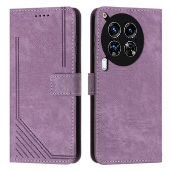 Για Tecno Camon 30 4G / 5G Skin Feel Stripe Pattern δερμάτινη θήκη τηλεφώνου με μακρύ κορδόνι (μωβ)