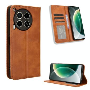 Για Tecno Camon 30 Premier 5G Μαγνητική πόρπη Ρετρό υφή δερμάτινη θήκη τηλεφώνου (καφέ)