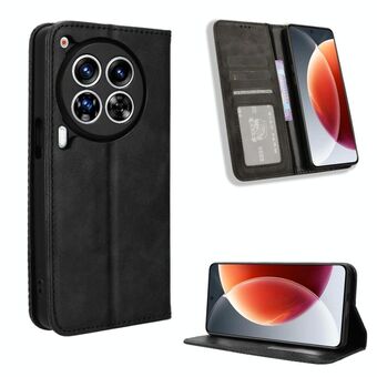 Για Tecno Camon 30 Premier 5G Μαγνητική πόρπη Ρετρό υφή δερμάτινη θήκη τηλεφώνου (μαύρο)