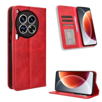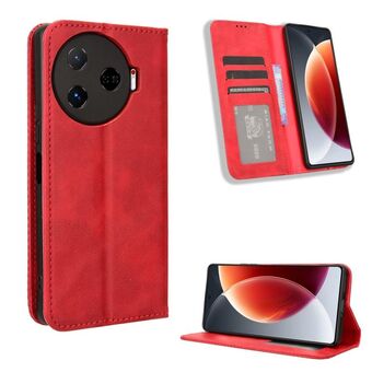 Για Tecno Camon 30 Premier 5G Μαγνητική πόρπη Ρετρό υφή δερμάτινη θήκη τηλεφώνου (κόκκινο)