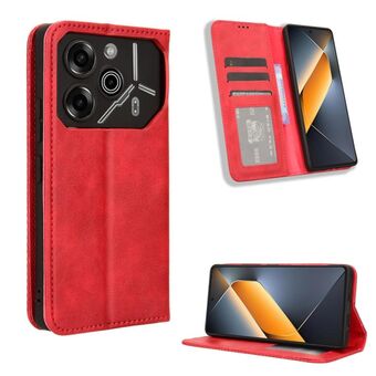 Για Tecno Pova 6 Pro 5G Μαγνητική πόρπη Ρετρό υφή δερμάτινη θήκη τηλεφώνου (κόκκινο)