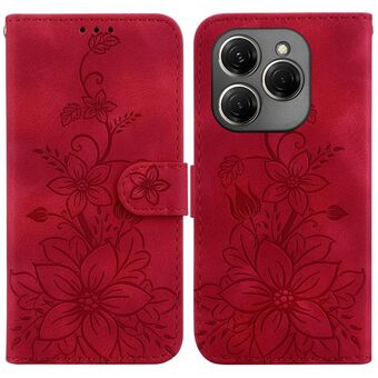 For Tecno Spark 20 Lily Embossed Leather Phone Case(Red)