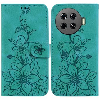 For Tecno Spark 20 Pro+ 4G Lily Embossed Leather Phone Case(Green)