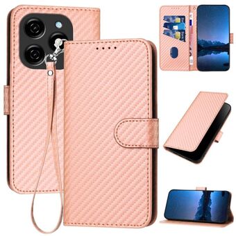 Για Tecno Spark 20 Pro YX0070 Carbon Fiber πόρπη δερμάτινη θήκη τηλεφώνου με κορδόνι (ροζ)