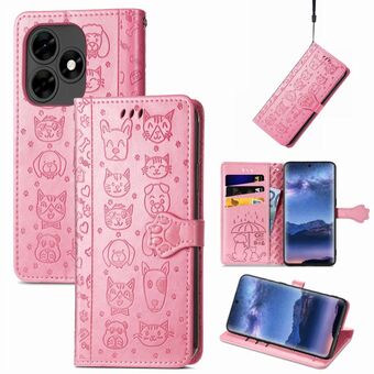Θήκη τηλεφώνου από δέρμα με ανάγλυφο σχέδιο γάτας και σκύλου για Tecno Spark Go 2024 (Χρυσορόδινο)