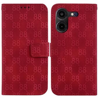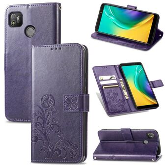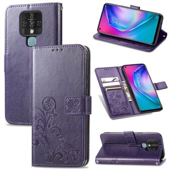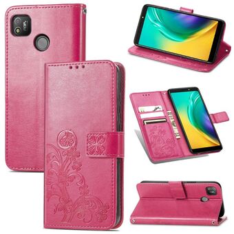 Θήκη δερμάτινη προστασίας κινητού τηλεφώνου για Tecno POP 4 Pro με κουμπωτό κούμπωμα σε σχήμα τριφυλλιού, ανάγλυφο, με κορδόνι, θήκη για κάρτες, πορτοφόλι και λειτουργία βάσης (Ματζέντα)