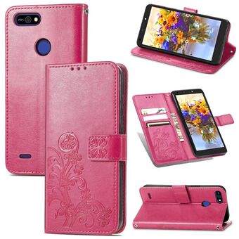 Θήκη δερμάτινη προστασίας κινητού τηλεφώνου για Tecno POP 2F με κουμπωτό κούμπωμα σε σχήμα τριφυλλιού, ανάγλυφο, με κορδόνι, θήκη για κάρτες, πορτοφόλι και λειτουργία βάσης (Ματζέντα)