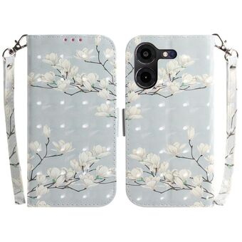 Θήκη τηλεφώνου δερμάτινη, οριζόντια, αναδιπλούμενη, με τρισδιάστατα χρώματα για Tecno Pova 5 Pro (Μαγνολία)