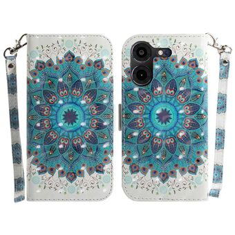 Θήκη τηλεφώνου δερμάτινη, οριζόντια, αναδιπλούμενη, 3D με χρώματα για Tecno Pova 5 Pro (Στεφάνι Παγωνιού)