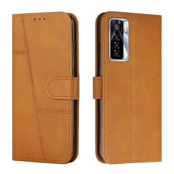 Για Tecno Camon 17P ραφή μοσχάρι υφή πόρπη δερμάτινη θήκη τηλεφώνου (καφέ)