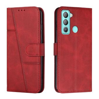 Για Tecno Spark 7 / 7T ραφή μοσχάρι υφή πόρπη δερμάτινη θήκη τηλεφώνου (κόκκινο)