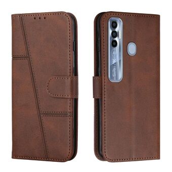 Για Tecno Spark 7 Pro Stitching μοσχάρι υφή Πόρπη δερμάτινη θήκη τηλεφώνου (καφέ)