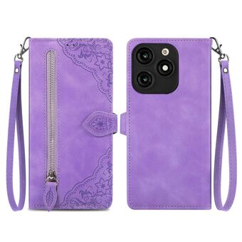 Για Tecno Itel A70 ανάγλυφο λουλούδι φερμουάρ δερμάτινη θήκη τηλεφώνου (μωβ)
