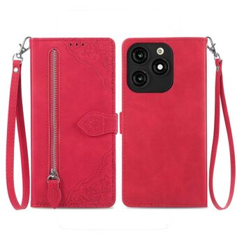 Για Tecno Itel A70 ανάγλυφο λουλούδι φερμουάρ δερμάτινη θήκη τηλεφώνου (κόκκινο)