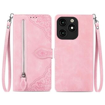 Για Tecno Itel A70 ανάγλυφο λουλούδι φερμουάρ δερμάτινη θήκη τηλεφώνου (ροζ)