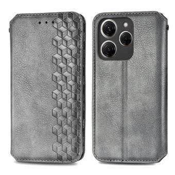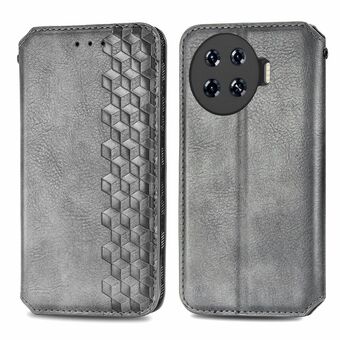 Για Tecno Spark 20 4G Cubic Grid Πιεσμένο μαγνητική δερμάτινη θήκη τηλεφώνου (γκρι)