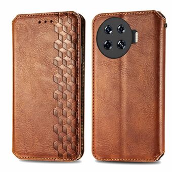 Για Tecno Spark 20 4G Cubic Grid Πιεσμένη μαγνητική δερμάτινη θήκη τηλεφώνου (καφέ)