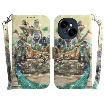 Θήκη τηλεφώνου δερμάτινη, οριζόντια, αναδιπλούμενη, πολύχρωμη 3D για Tecno Spark Go 1 / Pop 9 Pro (Ζωολογικός κήπος)