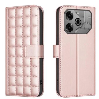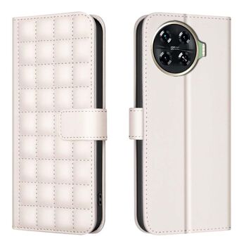 Θήκη τηλεφώνου Tecno Spark 20 Pro με υφή τετραγώνου από δέρμα (Μπεζ)
