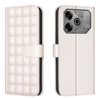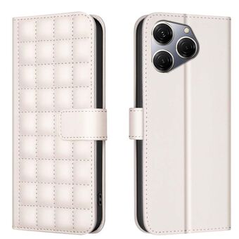 Θήκη τηλεφώνου Tecno Spark 20 με υφή τετραγώνου από δέρμα (Μπεζ)