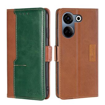 For Tecno Camon 20 Pro 4G Contrast Color Side Buckle Leather Phone Case(Light Brown + Green)