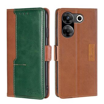 For Tecno Camon 20 Premier 5G Contrast Color Side Buckle Leather Phone Case(Light Brown + Green)