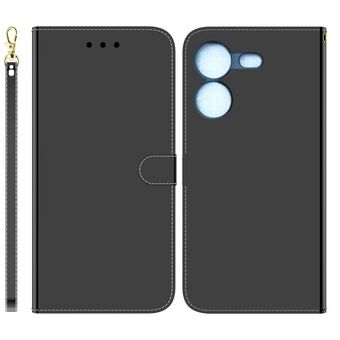 Για Tecno Spark 10 5G Απομιμητική επιφάνεια καθρέφτη Δερμάτινη θήκη τηλεφώνου (Μαύρο)